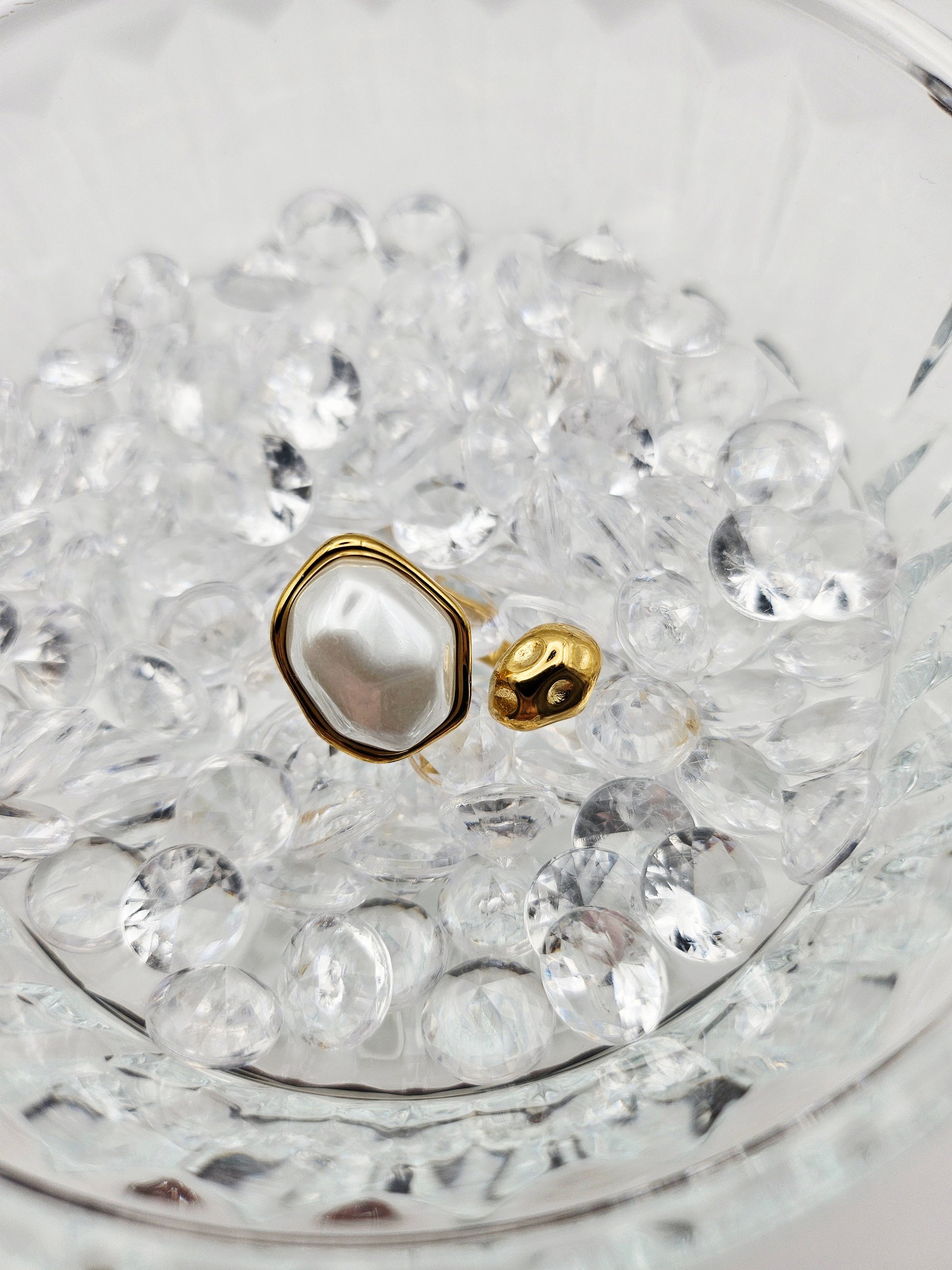 - Contraste entre la perle nacrée et la monture dorée texturée ✨