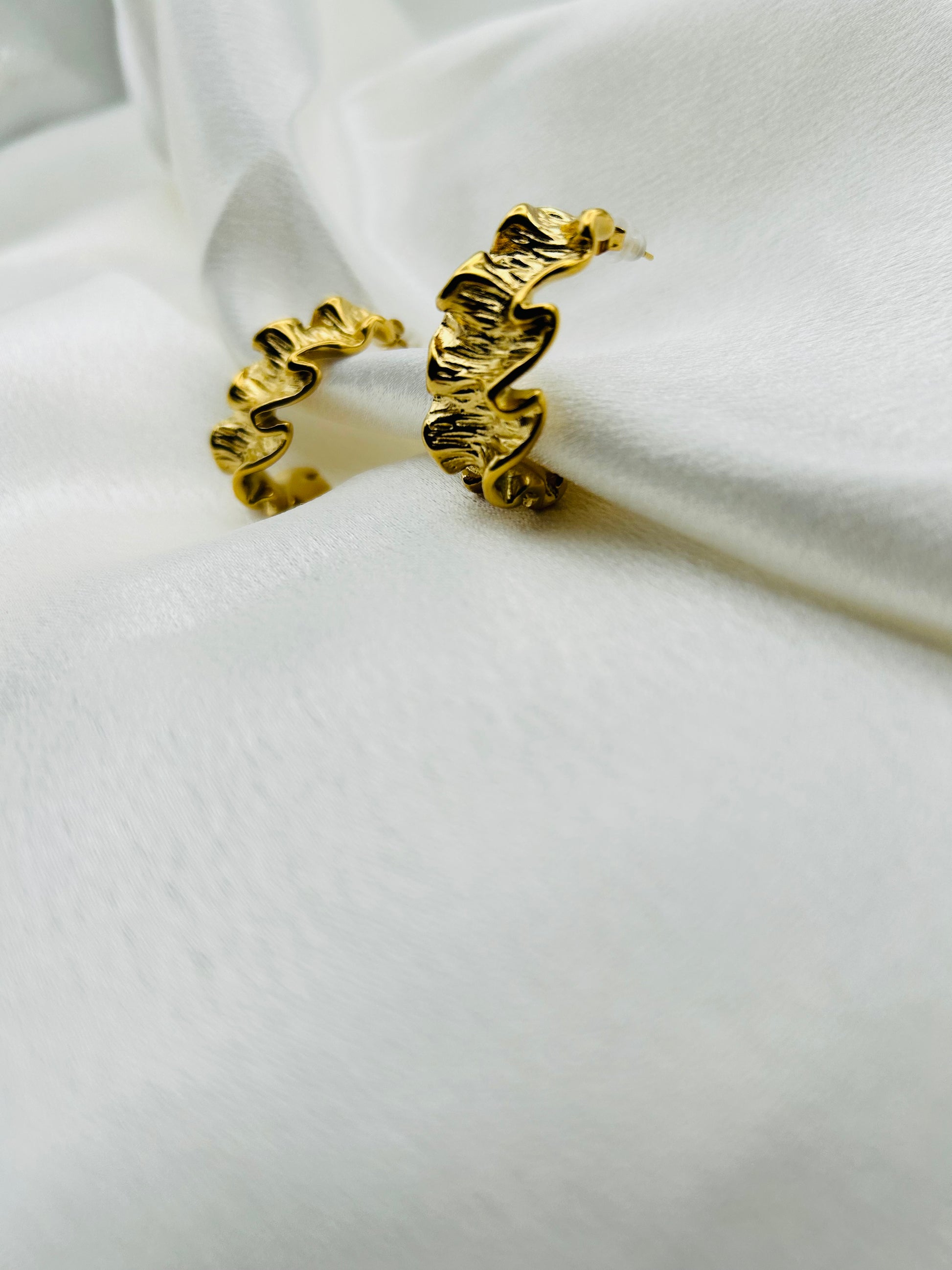 Design Texturé Unique : La forme en vague ou en ruban ondulé donne à ces petites créoles une dimension artistique et un éclat unique qui accroche la lumière de manière inattendue. 💫