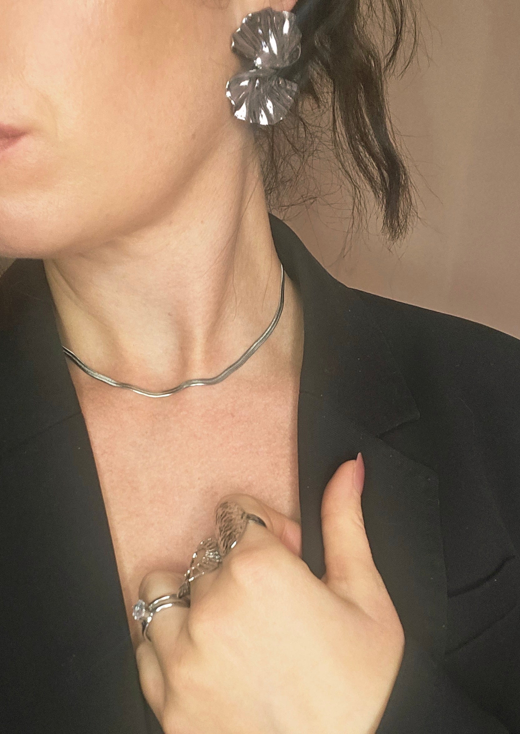 ✨ La finition argentée et le relief plissé captent magnifiquement la lumière, créant un effet lumineux et sophistiqué.