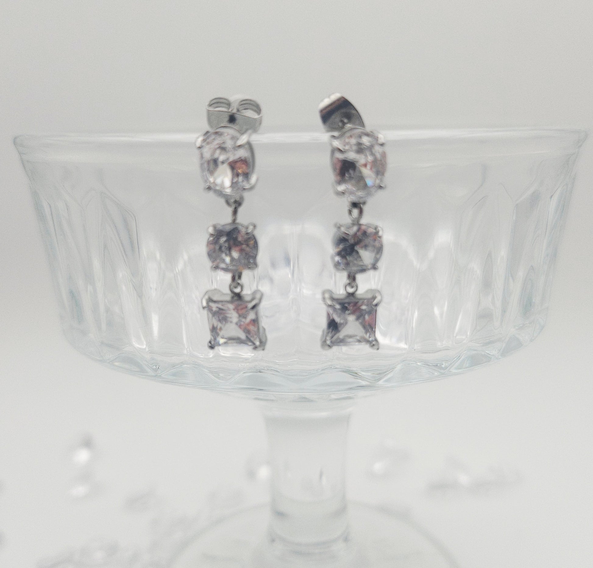 Les boucles d'oreilles Éclat sont d'une élégance pure et lumineuse. Leur design est composé de trois pierres de zircon taillées, qui créent une cascade de brillance. ✨