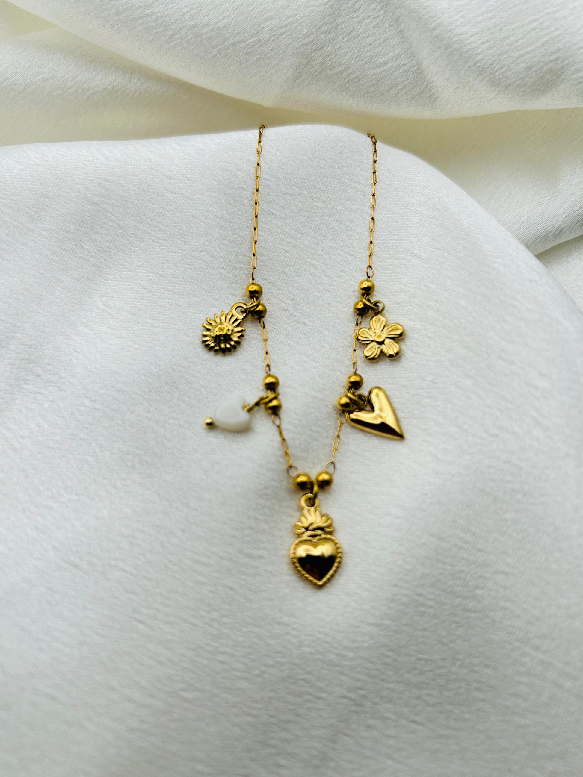 Le Bracelet Élora est une pièce ludique et riche en détails, conçue pour celles qui aiment que leurs bijoux racontent une histoire. Chaque breloque dorée est un petit trésor qui ajoute du mouvement et de la lumière à votre poignet.