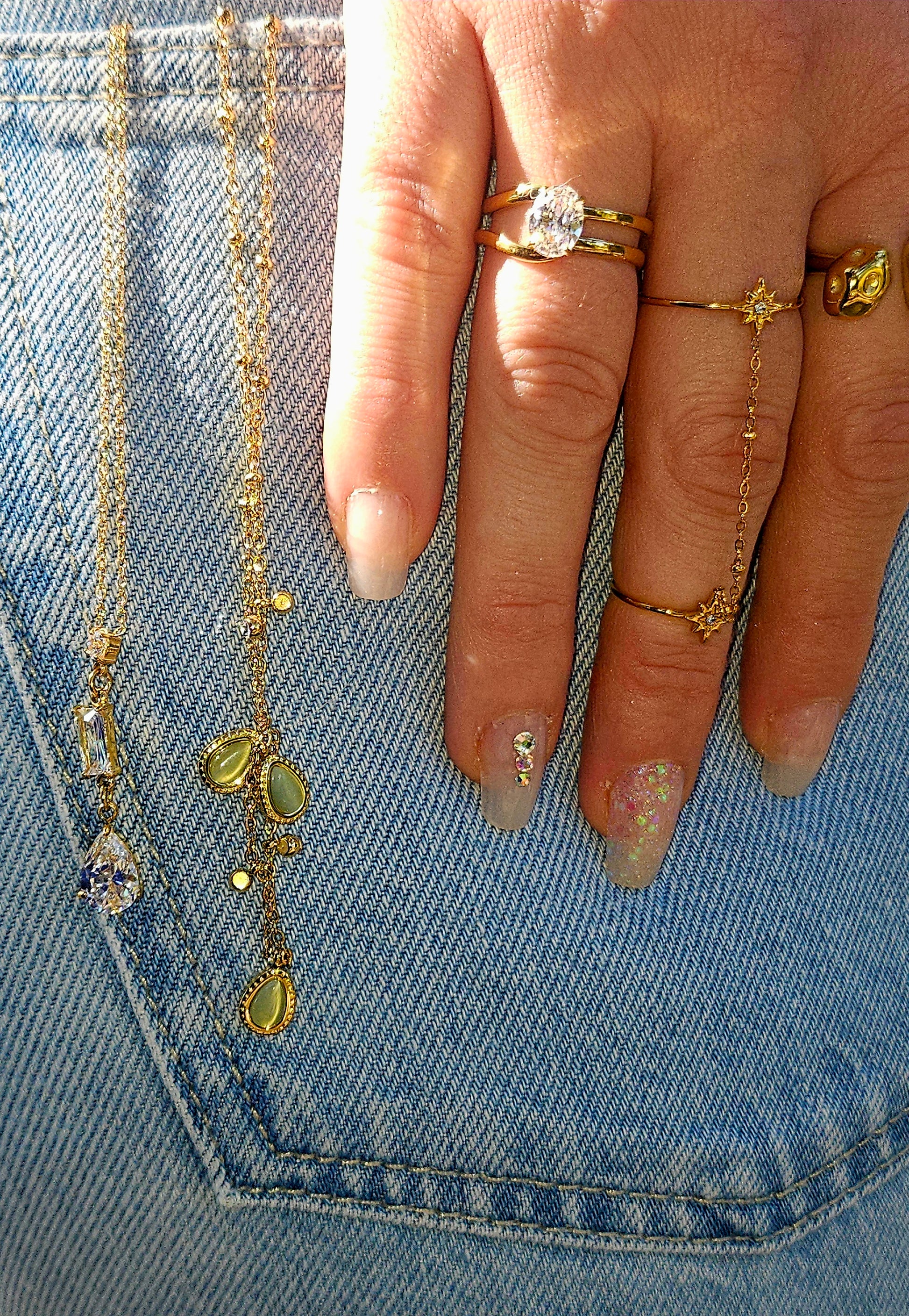 Le collier "Aqualuna" est conçu pour se poser élégamment sur votre décolleté, créant un effet de cascade lumineuse. Parfait pour ajouter une touche de féérie à votre tenue, il s'adapte aussi bien à un look quotidien qu'à une occasion spéciale. 🧚♀️