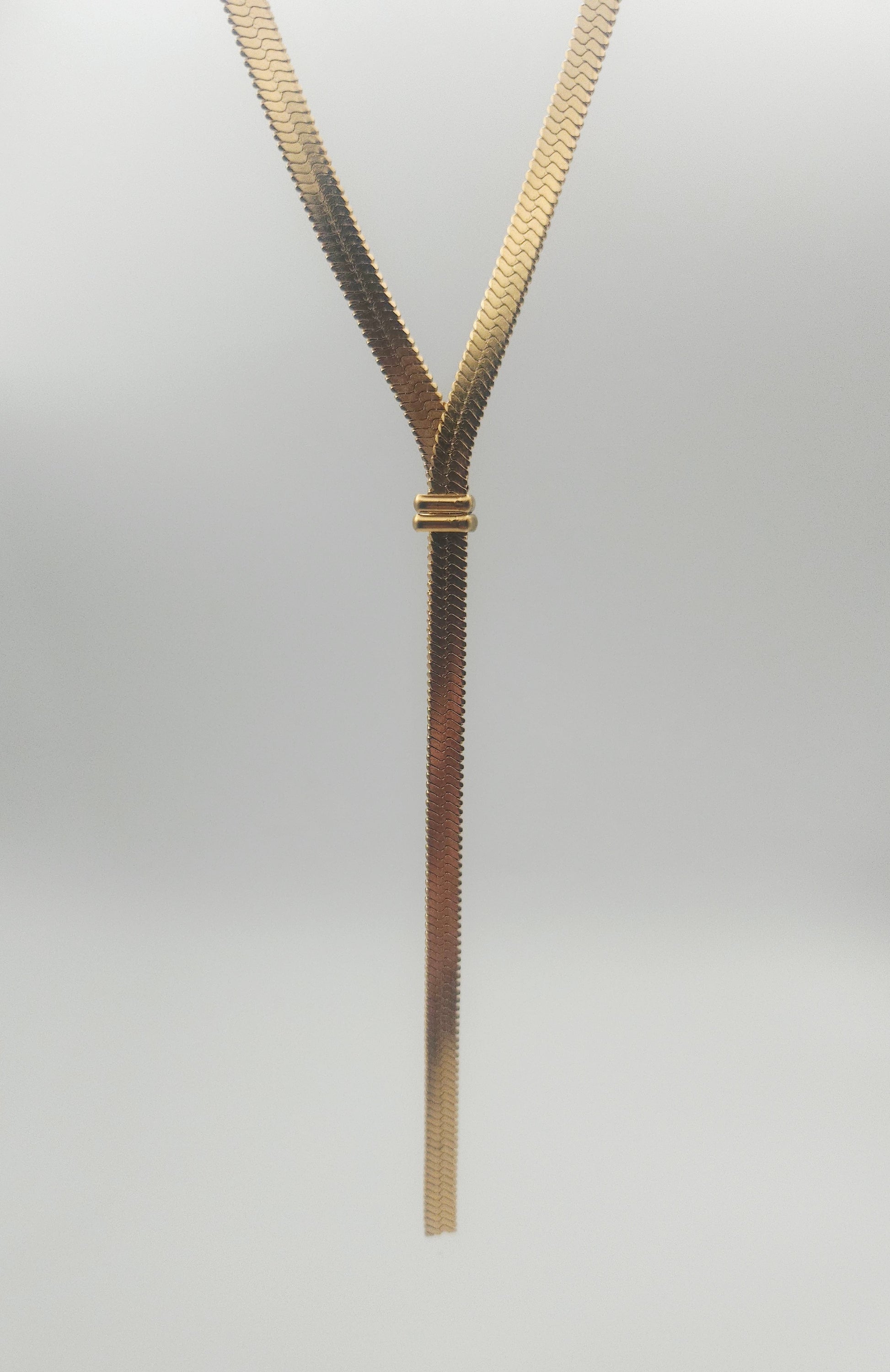 Le point de jonction au centre permet à la chaîne de se séparer en deux pans délicats, créant un effet de cravate bijou très tendance. C'est l'accessoire parfait pour un décolleté, apportant une touche d'élégance audacieuse et un éclat subtil à n'importe quelle tenue. ✨