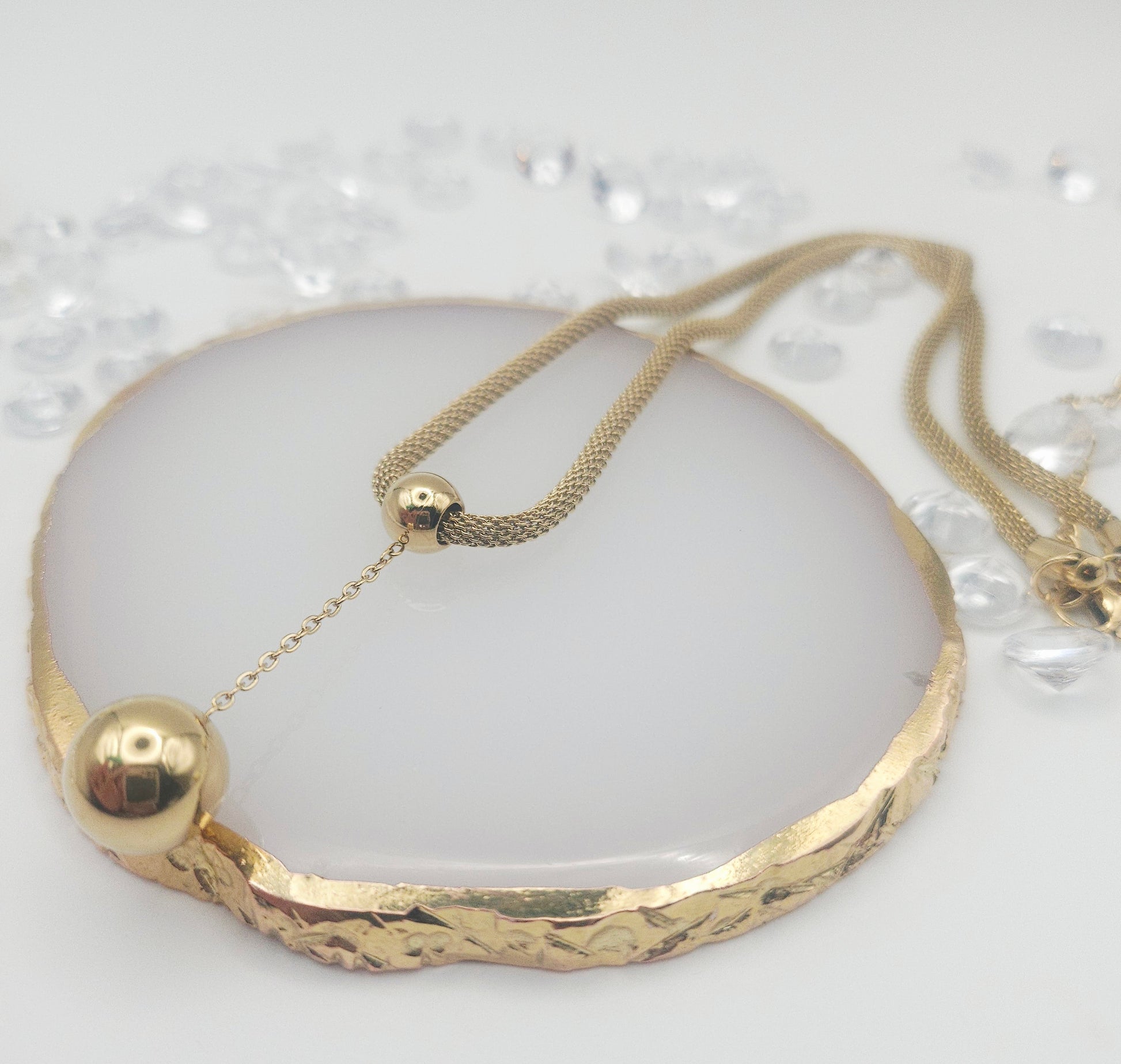 Une plus petite boule coulissante permet d'ajuster la longueur du collier à votre guise. C'est l'accessoire idéal pour adapter votre bijou à votre tenue et à votre décolleté. 🤩