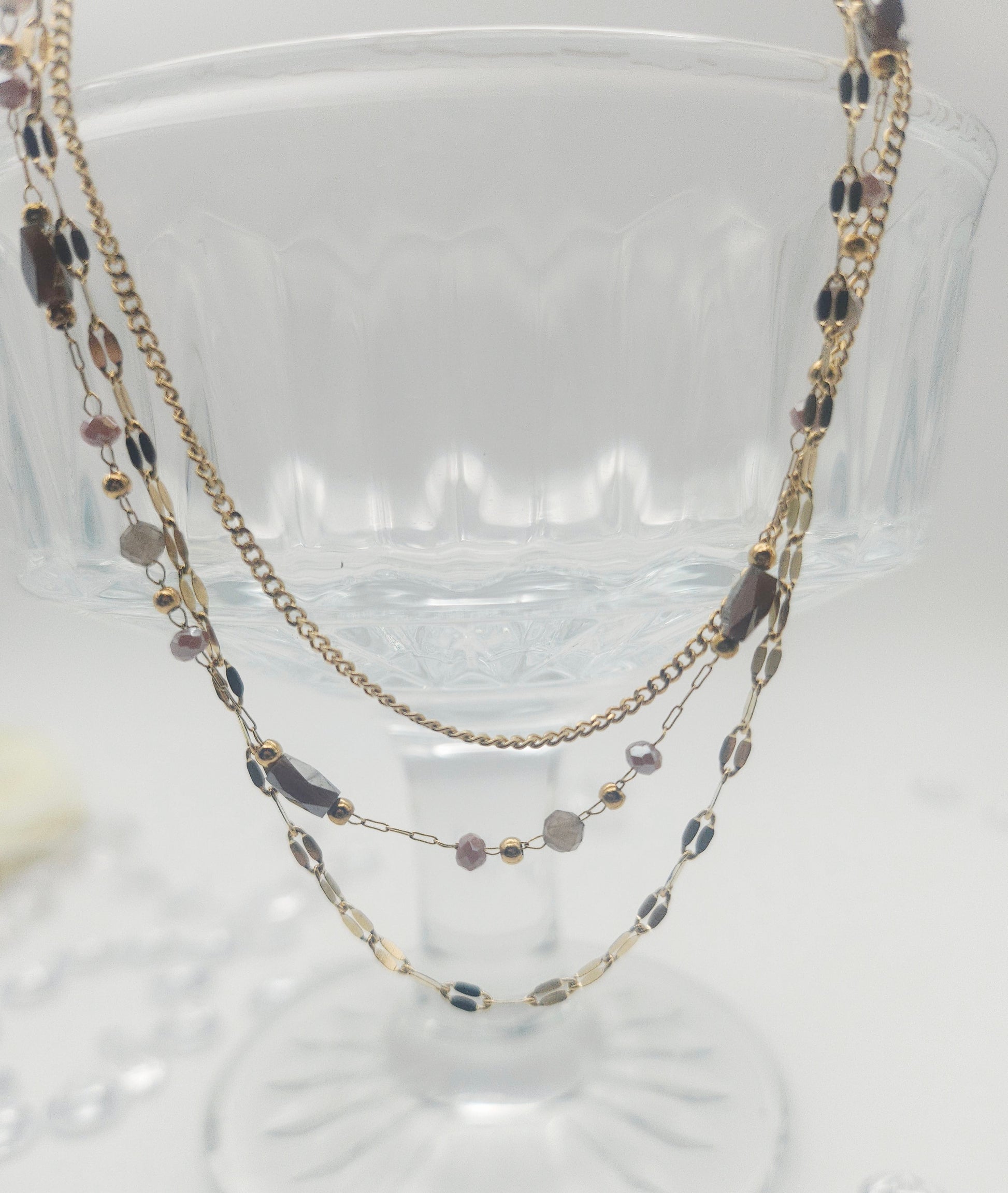 C'est le bijou parfait pour ajouter une touche de sophistication à n'importe quelle tenue, avec ses superpositions tendance et ses couleurs chaleureuses. 💖
