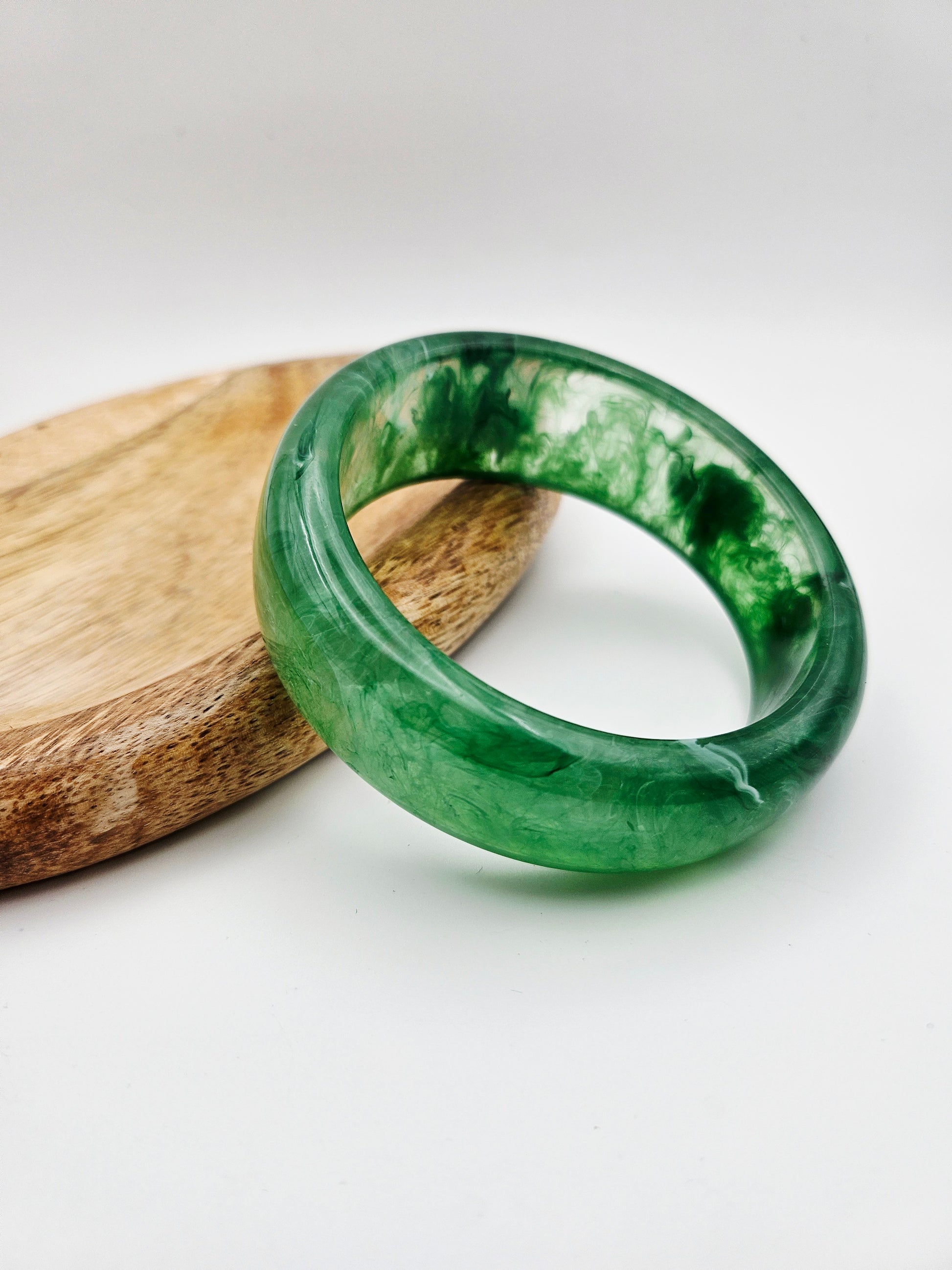 Succombez au charme mystique et à l'élégance naturelle du jonc "Jade". Ce bracelet rigide est une véritable œuvre d'art, taillé dans une résine qui imite à la perfection la profondeur et les nuances de la pierre de jade. 💎